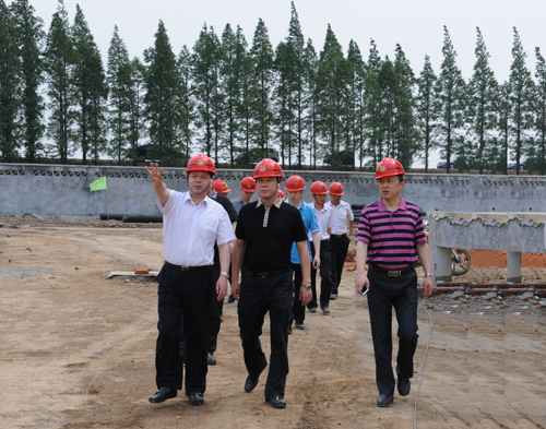 首先,封副市長一行來到澄西水廠建設(shè)工地,實(shí)地視察了取水泵房、平流沉淀池、V型濾池、反沖洗泵房、供水泵房等施工現(xiàn)場,邊走邊詢問每個生產(chǎn)部位的一些功能和原理,公司領(lǐng)導(dǎo)都一一給予了解說,當(dāng)?shù)弥?span lang="EN-US">7月份該水廠一期10萬立方米/日凈水工程將投入試運(yùn)行,形成東、西水廠的對置、聯(lián)網(wǎng)供水,我市日綜合供水能力提升至106萬立方米,從而進(jìn)一步理順和完善區(qū)域內(nèi)的供水體系,大大提高我市供水的安全可靠性時,封副市長表示:江南水務(wù)堅(jiān)持“適度超前”的原則,不斷增強(qiáng)供水能力,優(yōu)化管網(wǎng)結(jié)構(gòu),提高水質(zhì)檢測能力,提升水務(wù)專業(yè)服務(wù)水平,切實(shí)保障民生需求和供水安全,為江陰經(jīng)濟(jì)社會的健康、穩(wěn)定發(fā)展做出了積極貢獻(xiàn)。