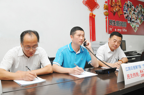 7月15日下午14:00,我公司副總經(jīng)理曾武、客服中心主任吳敏、質(zhì)量管理部經(jīng)理孫正杰做客《江陰日?qǐng)?bào)》夏令熱線現(xiàn)場(chǎng),熱心為市民解疑釋惑,并簡(jiǎn)要介紹了今夏供水高峰期的飲用水安全保障工作。