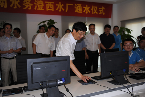 8月17日,江陰市委副書記、市長沈建,副市長封曉春一行蒞臨澄西水廠,上午9:00在中心控制室,沈市長親手開啟通水啟動鍵,標(biāo)志著江陰澄西水廠供水工程一期日供水能力10萬立方米順利竣工通水,投入正式運(yùn)行。當(dāng)天,市政府發(fā)改委、財(cái)政局、公用局等部門,臨港街道等單位,公司領(lǐng)導(dǎo)和部分部門負(fù)責(zé)人,工程建設(shè)工作小組等30多人參加通水儀式。