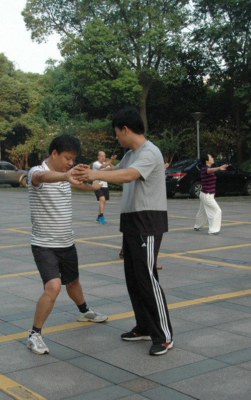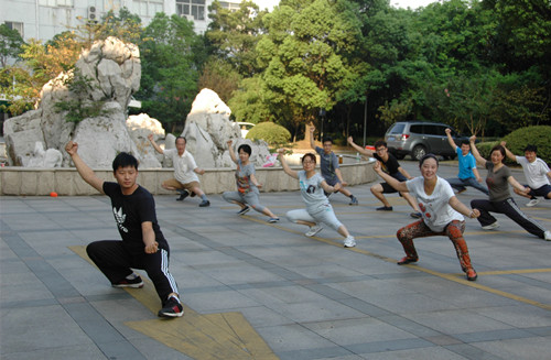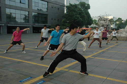 高溫繼續(xù),而學員們的熱情也持續(xù)著。有別于初始階段的動作掌握,學員們開始追求意、氣、形、神趨于圓融一體的境界,追求人與自然的融洽和諧。每一個姿勢,學員們都力求完整,每一個動作,都調整吐納。沒有一絲風的三伏天,學員們汗如雨下。衣服濕了,汗水流進眼睛刺痛了眼球,但他們?nèi)詧猿种,沒有人偷懶懈怠。