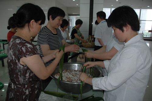 端午的粽子就跟八月十五的月餅一樣必不可少,6月6日這天中午,江南水務(wù)的女員工早早地來到食堂,享受自己動(dòng)手包粽子的樂趣。一框框洗好干凈的蘆葦葉、新鮮泡好的大米,還有豐富口味的花生紅豆擺滿了桌,就等著大家開始顯身手了。