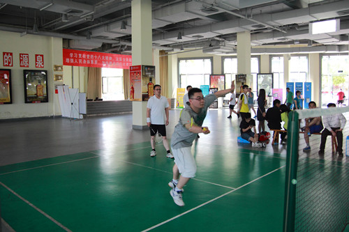 比賽當(dāng)天,參賽的、不參賽的員工就早早地來(lái)到體育中心,換上輕便運(yùn)動(dòng)裝的參賽隊(duì)員更是搖身一變成了活力四射的運(yùn)動(dòng)員。本次友誼賽分為男子單打、男子雙打、女子單打、混雙4個(gè)項(xiàng)目,采取三局兩勝淘汰制,先得21分為勝者。