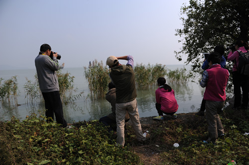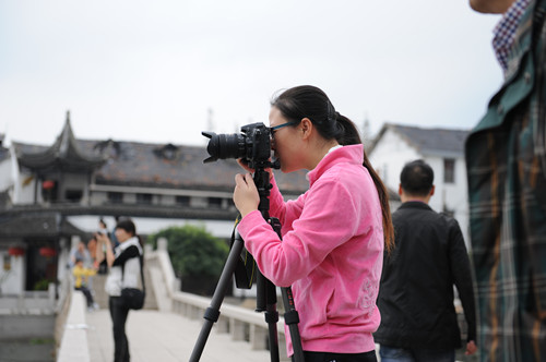 11月19日,攝影小組部分成員一行10多人分別來到蘇州錦溪古鎮(zhèn)和太湖,拍攝自然風景。拍攝風景照主題需鮮明,抓住特點,突出重點,取景時對與表現(xiàn)主題無關的景物,不要納入畫面的構圖中,使主體在位置遠近、形體大小、色調(diào)對比上處于主要地位,畫面集中,生動而優(yōu)美。在空間的表現(xiàn)上,所取的景物要有一定的深度,可利用逆光加強空氣透視,從色調(diào)上分清前后景的距離,利用濾色鏡或云霧,也可加強或減弱透視感;在時間的表示上,清早透過晨霧,傍晚配上適當?shù)臑V色鏡;在焦點的調(diào)節(jié)上,對準主要被攝物調(diào)節(jié)焦點,前景越清楚越好,使得畫面層次豐富、主次分明;在曝光的控制上,根據(jù)被攝主體確定的曝光量,常常需要稍稍增加,以表現(xiàn)陰影部分的細節(jié);同時還要注意天氣的表現(xiàn),增強藝術效果。總之,通過對自然景色的生動描繪,來表達或寄托人的思想感情,很深的意境引起人們的深刻聯(lián)想。