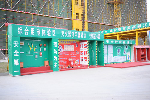 公司新建業(yè)務(wù)用房設(shè)有安全教育體驗(yàn)區(qū),包括綜合用電體驗(yàn)區(qū)、滅火器演示體驗(yàn)區(qū)、安全帽撞擊體驗(yàn)區(qū)及安全教育宣講臺(tái)等功能區(qū),從視覺、聽覺、觸覺方面讓施工者提高自我安全意識(shí),提升突發(fā)事件應(yīng)急處置能力,確保安全施工。