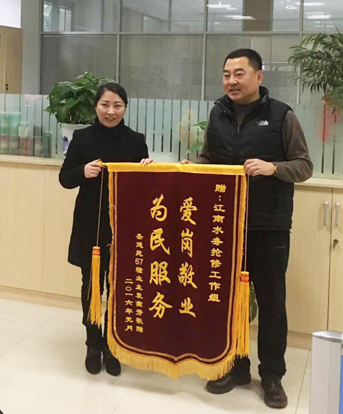 “等等,我還不知道你們的名字呢。”第2天一大早,袁女士便帶著錦旗,送來了她對搶修隊員的感謝。