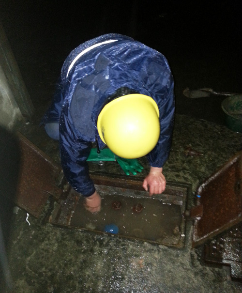 天愈發(fā)黑了,寒風(fēng)夾雜著雨點(diǎn),像小刀似地刮在人的臉上。大家頂著風(fēng)雨找到了報修用戶的水表總閥,準(zhǔn)備關(guān)閥搶修。不巧,閥門位置正好位于地面低洼處,已被雨水泥沙堵住了,看不清情況。情況緊急,必須盡快找到閥門。搶修人員跪在地上,脫掉手套,把手伸進(jìn)冰冷泥濘的表箱中,靠著手的靈敏觸感,很快就找到了閥門,關(guān)閉它。