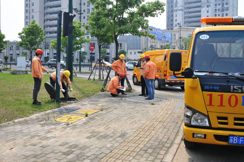 上午9點(diǎn)45分,報(bào)修電話響起:“位于澄江路隧道口北的通渡路綠化帶內(nèi)有大量自來水溢出。”搶修隊(duì)接報(bào)后快速反應(yīng),人員、設(shè)備、車輛緊急出動(dòng)。9點(diǎn)56分,搶修負(fù)責(zé)人、搶修一班、110聯(lián)動(dòng)搶修車相繼趕到事發(fā)地點(diǎn)。經(jīng)過現(xiàn)場初勘,確認(rèn)為綠化帶內(nèi)DN800玻璃鋼管爆管,由于爆漏情況較為嚴(yán)重,隨即啟動(dòng)搶修應(yīng)急預(yù)案。