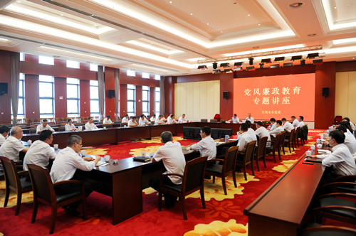 5月11日,公司黨委組織開展“5•10”黨風(fēng)廉政教育專題講座,江陰市紀(jì)委監(jiān)委第一紀(jì)檢監(jiān)察室主任鄭廣華以“常思追責(zé)問責(zé)之厲 依法依規(guī)履職盡責(zé)”為題,結(jié)合多年實踐經(jīng)驗及實際案例,從提升擔(dān)當(dāng)意識、加強(qiáng)紀(jì)律意識、培養(yǎng)人品觀德等方面進(jìn)行了深入淺出地講解,嚴(yán)明黨紀(jì)法規(guī),警示黨員干部遵紀(jì)守法、干凈做人、踏實做事。
