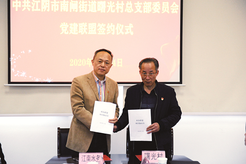 11月24日,公司與江陰市南閘街道曙光村舉行“黨建聯(lián)盟”簽約儀式。南閘街道黨工委書記李志浩、副書記蔡曉華、紀(jì)工委書記張瓊、組織委員蔣峰、曙光村黨總支部書記金順才,公司董事長(zhǎng)、總經(jīng)理華鋒,黨委書記龔國賢,副總經(jīng)理高立,以及雙方黨員先鋒隊(duì)、志愿服務(wù)隊(duì)代表參加簽約儀式。